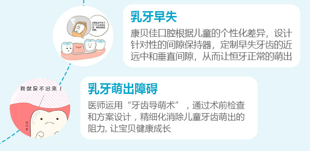 南京康贝佳口腔医院,拥有专业的儿牙治疗系统和完善的儿牙预防保健系统等,开设"儿童正畸、治龋防龋、牙齿缺损、换牙护理、乳牙诊疗"等多个项目,资深医师为孩子量身定制个性化诊疗方案,让宝宝健康、家长放心。